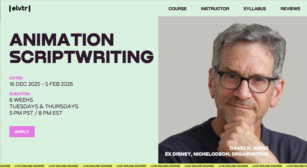 LIVE ONLINE COURSE ON ANIMATION SCRIPTWRITING